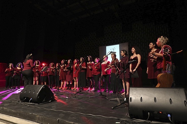 El Ensamble Femenino Crisálidas, formado por voces de mujeres rehabilitadas de disfonía por estrés, interpretaron un repertorio de música mexicana con originales cambios que daban a cada tema un sentido feminista.