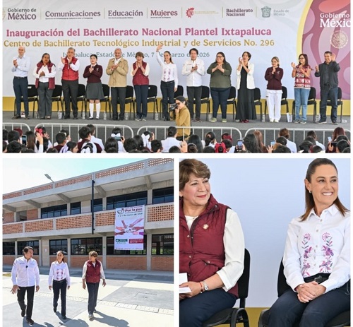 Ixtapaluca, Estado de México.– En una gira significativa para jóvenes mexiquenses, la Presidenta de México, Claudia Sheinbaum Pardo, y la Gobernadora del Estado de México, Delfina Gómez Álvarez, inauguraron los Centros de Bachillerato Tecnológico Industrial y de Servicios (CBTIS) No. 296 y 294 en Ixtapaluca y Chimalhuacán, respectivamente, con una inversión de 134 millones de pesos para ampliar el acceso a la educación media superior en la región oriente de la entidad y evitar que la comunidad estudiantil tenga que desplazarse lejos de su entorno familiar.