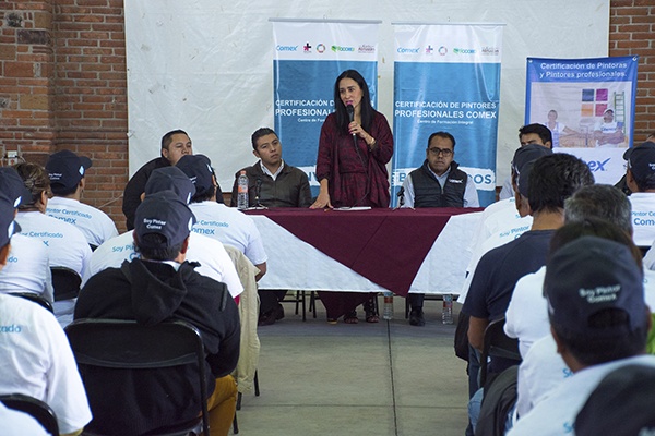 “Precisamente son esfuerzos para eso, para que mujeres hombres, que el día de hoy 40 por ciento de asistentes son mujeres, se puedan auto emplear el día de mañana o en sus domicilios hagan trabajos de pintura”, señaló.