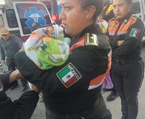 Chimalhuacán, Estado de México. – Elementos de la Dirección de Tránsito, Vialidad y Movilidad Municipal de Chimalhuacán auxiliaron a una mujer que se encontraba en labores de parto en la vía pública, logrando que el nacimiento se llevara a cabo de manera exitosa.