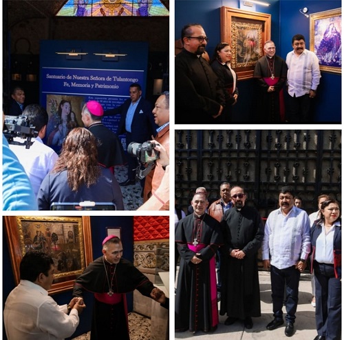 La exposición Fe, Memoria y Patrimonio, inaugurada por el presidente municipal de Texcoco Nazario Gutiérrez Martínez, la presidenta Honoraria del Sistema Municipal (DIF) Yesenia Armas Tobón, el Obispo de la Diócesis de Texcoco Carlos Enrique Samaniego López, el párroco de Tulantongo Jaime Rivas Aldana y el curador de la muestra de arte Evaristo Iván Valdez Bautista, así como autoridades auxiliares de la comunidad, integrantes del comité de reconstrucción y rescate del templo, así como de la mayordomía, quienes promovieron y trabajaron conjunto para lograr dar a conocer estas imágenes únicas del arte sacro.