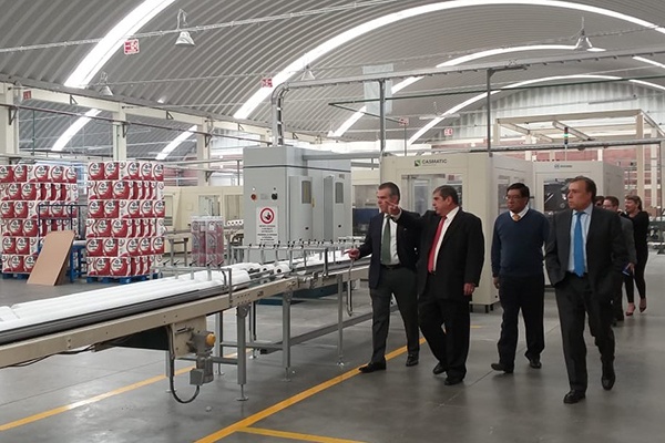 Para conocer los detalles de la fabricación de papeles higiénicos, el presidente de la Confederación de Cámaras Industriales (Concamin), Francisco Cervantes Díaz, recorrió las áreas de producción y conversión; personal altamente capacitado fue el encargado de mostrar al líder empresarial el proceso que llevan a cabo para tener productos de calidad.